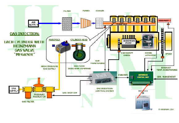 Heinzmann can arrange for a dual fuel conversion on your engine including all the mechanical components,