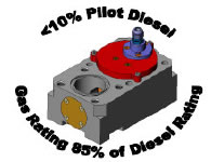 The system offered by Heinzmann overcomes all of the above issues and offers a very safe, efficient and well governed system. It results in a Pilot diesel level of <10% being used to ignite a gas air mixture and a dual fuel power rating of over 85%. Full power rating under normal diesel only running is unaffected by the conversion.
