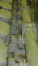 hand valve at the connection point to the gas main. These are to isolate the gas supply when the engine is not running on gas or in an emergency shutdown. The valves are air actuated and are controlled by small pilot solenoid valves closing to the failsafe position if the air supply is lost. The block valves have soft seals so that the shutoff is guaranteed and the valves close failsafe on loss of control signal or air supply.