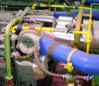 The system will feature a MEGASOL gas injection valve arranged to inject fuel gas into the intake port of each cylinder (one valve per cylinder). The installation of the gas injection valves requires modifications to the intake manifold sections of the engines. Existing designs are available for some engines. The gas injection valves will discharge into a pipe tail which will project through the intake manifold and into the intake ports of the respective cylinders. On the supply side the MEGASOL valves are all fed from a new gas supply manifold run above the original intake manifold (two gas supply manifolds in the case of the V engines). The manifold will be sized according to the fuel gas flow and pressure and will be approximately 75-150mm and will feature a gas pressure sensor which will allow the controller to compensate for changes in gas supply pressure and also trip to diesel operation if the gas supply fails.
