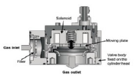 A pressure sensor indicates available gas pressure and is used as a safety
